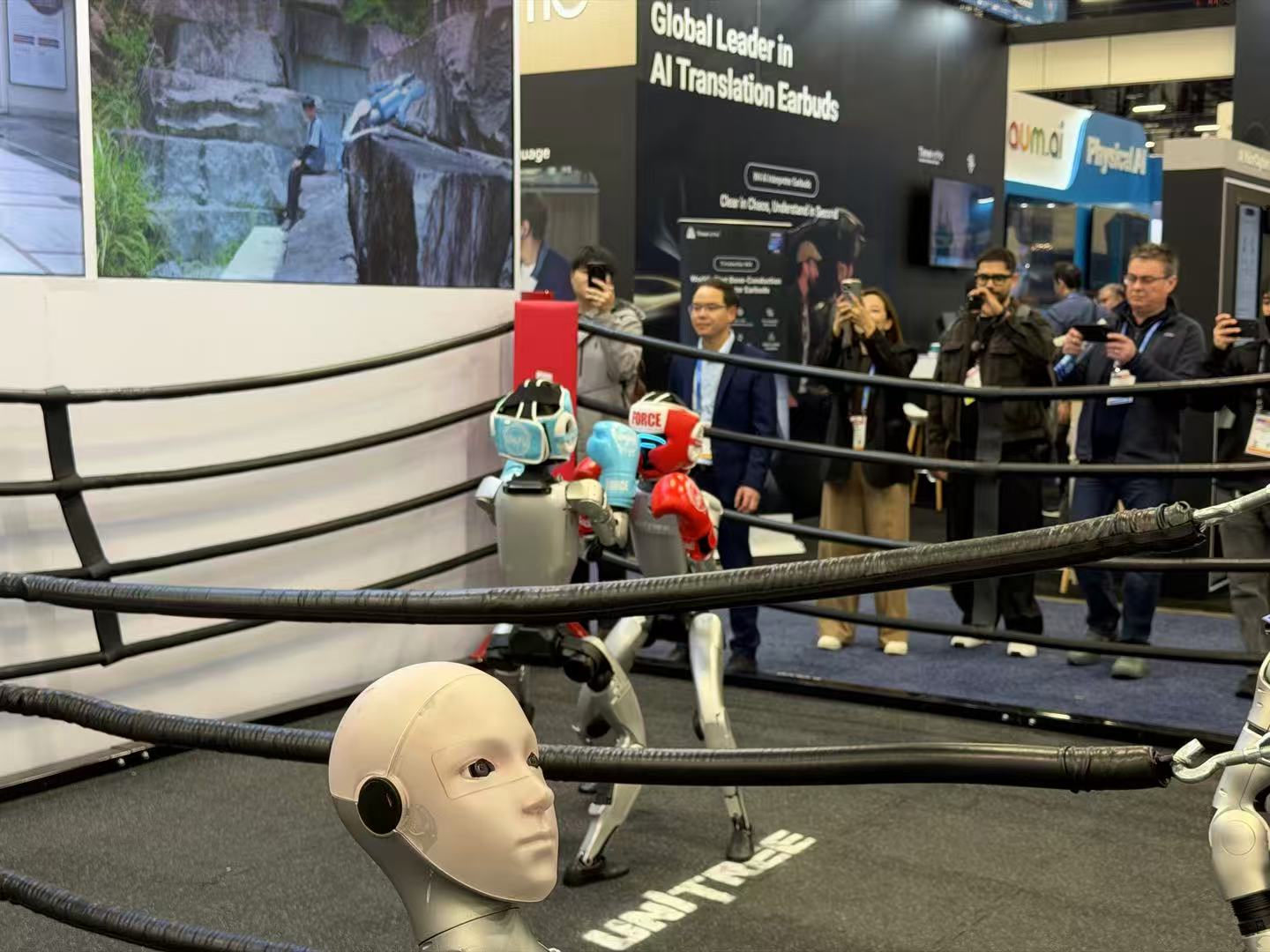 [In Photos] China's Embodied-AI Firms Exhibit Dancing, Fighting Robots at CES(Yicai) Jan. 8 -- Chinese embodied artificial intelligence firms, such as Unitree Robotics and AgiBot, have brought their products to the Consumer Electronics Show in Las Vegas, showcasing robots fighting, practicing aerobics, dancing, and handing out business cards.