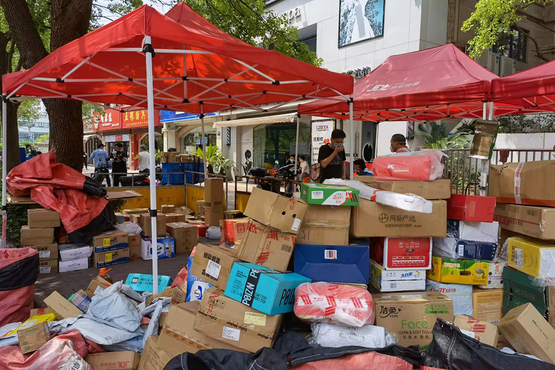 Some residential communities are also still not allowing deliverymen to enter the complexes. So many firms have set up stalls outside the gates for residents to collect their packages themselves. Each stall needs to be manned by a staff member, which is a drag on efficiency.