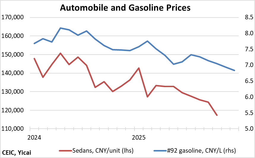 It should also be emphasized that retail sales are measured in nominal terms and they give a distorted picture of consumption when there are large price movements. Table 3 shows that retail sales of automobiles and petroleum, two large consumption categories, fell in 2025. But this decline seems to be entirely due to lower prices (Figure 11). In price-adjusted terms, consumption of automobiles and petroleum likely increased by 6 and 1 percent, respectively.