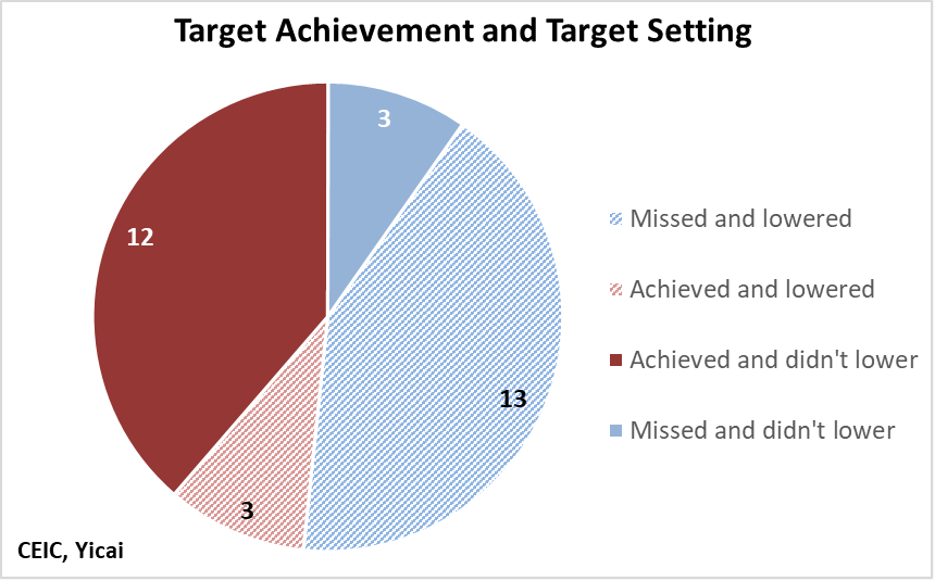 As noted above, provincial-level targets typically exceed those set for the country as a whole. Some observers have suggested that this aiming high gives local governments the ability to over-achieve while reducing the penalty for failure as long as local growth exceeds the national target.