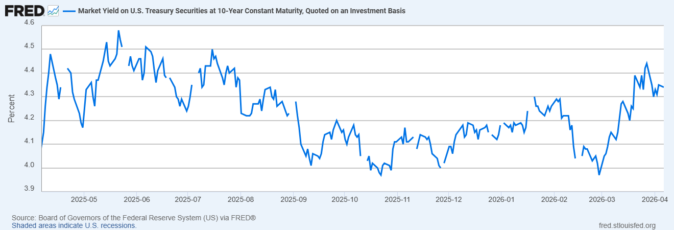 Source: FRED, Market Yield on U.S. Treasury Securities at 10-Year Constant Maturity, Quoted on an Investment Basis (DGS10/GS10)