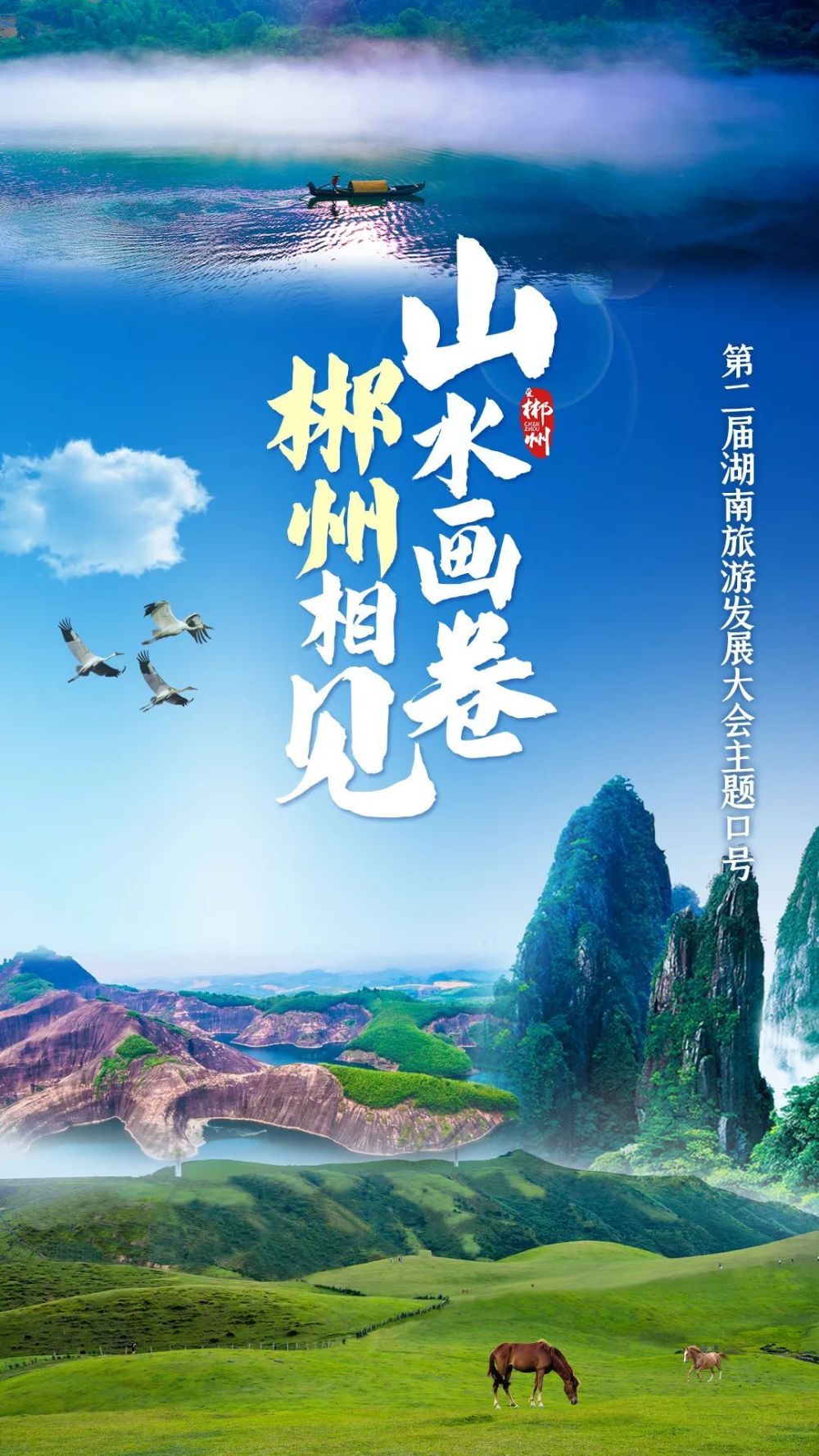 Landscape painting scroll, Chenzhou meet. in September 2023, the second Hunan tourism development conference will meet with you in Chenzhou. At present, Chenzhou has entered the decisive stage of the Tourism Development Conference and the moment of charge and sprint. Everyone in Chenzhou is contributing to the Tourism Development Conference in various ways.