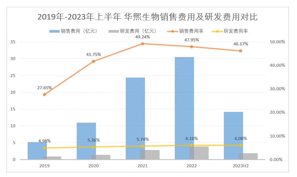 in the first half of this year, Huaxi biological sales expenses were about 1.42 billion yuan, up 2.4 percent year-on-year, accounting for 46.17 percent of the company's total revenue.