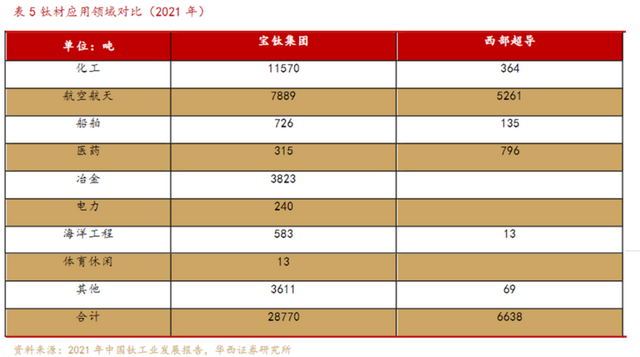 from the downstream point of view, the western superconducting production of high-end titanium alloy materials, mainly for the military field . From the 2021 sales structure, the aerospace sector sales of titanium 5261 tons, accounting for up to 79%.