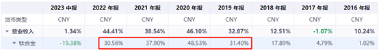 from the past data, in 2016 and 2017, the western superconducting titanium alloy revenue growth of only 1.02, 4.79. In recent years, the country's demand for military aircraft has been strong, and Western Superconductor has basically maintained an income growth rate of more than 30%. However, in the first half of 2023, titanium alloy revenue turned down, year-on-year decline up to 19.38 percent (due to the performance of Baotitanium shares difficult to distinguish between military and civilian, so mainly to the western superconducting data as an example, the same below).