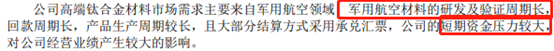 according to the western superconducting financial report, the market demand for its high-end titanium alloy materials mainly comes from the military aviation field. the research and development and verification cycle of military aviation materials is long, the collection cycle is long, the product production cycle is long, and most of the settlement methods adopt acceptance bills, resulting in greater short-term capital pressure of enterprises.