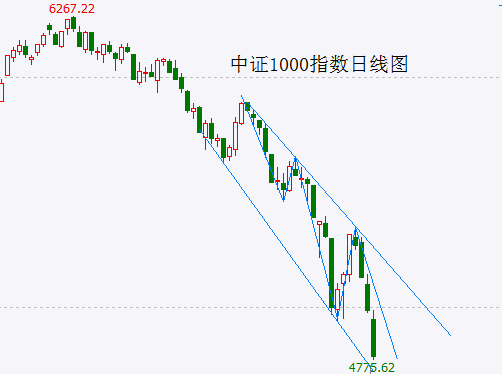 the market continues to fall. the China securities 1000 index has reached the support level of 4781 points. if it cannot hold up here, there are still 4669 points below, and the distance is 100 points. it is expected to stop falling around here. Continuous decline after the rebound and then accelerate, local out of the 5 wave structure, can be considered as a short-term bottom signal. This vertical decline in the current position is not expected to last long. The short-term low has gradually approached, so we can pay attention to the stop signal.