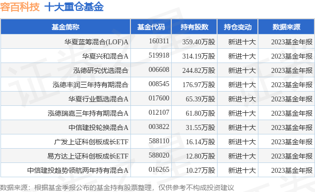 According to the 2023 Fund Annual Report, there are 19 public funds that hold heavy positions in the stock, of which the largest number of public funds are Huaxia Blue Chip Hybrid (LOF)A. China Blue Chip Hybrid (LOF)A is currently 1.806 billion yuan in size, with the latest net worth 0.971 (February 5), down 2.9 per cent from the previous trading day and 45.26 per cent in the past year. The current fund manager of the public fund is Li Yan. Li Yan's fund products include: Huaxia Xinghe Hybrid A, with management time from June 12, 2020 to date, with a period return rate of 15.92. Huaxia industry selects mixed A, with management time from March 28, 2023 to date, with a period return rate of -36.82%; Huaxia Ruiyi Hybrid A1, with management time from December 4, 2023 to date, with a period return rate of nan%.