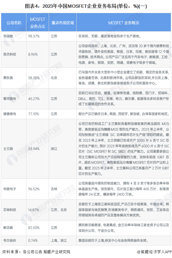 From the perspective of the business layout of Chinese MOSFET industry manufacturers, most manufacturers have set up production bases and technical support centers in many regions of the country on the basis of the layout of their headquarters. In addition, leading manufacturers including Yangjie Technology and Yandong Micro have gradually realized overseas layout.