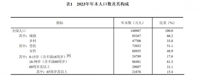 The communiqué shows that the country's population at the end of the year was 1409.67 million, a decrease of 2.08 million from the end of the previous year, of which 932.67 million were permanent urban residents. There were 9.02 million births in the whole year, with a birth rate of 6.39 ‰. There were 11.1 million deaths, with a mortality rate of 7.87 ‰. The natural growth rate is -1.48 ‰.