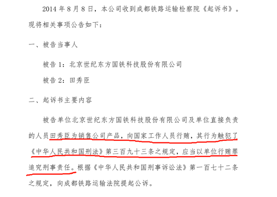 In August of the following year, an announcement from Century East once again shocked the capital markets. The announcement shows that in order to sell the company's products, Tian Xiuchen, the direct person in charge of Century Oriental and the unit, paid bribes to state functionaries, which violated the provisions of Article 393 of the the People's Republic of China Criminal Law, and should be investigated for criminal responsibility for the crime of bribery by the unit.