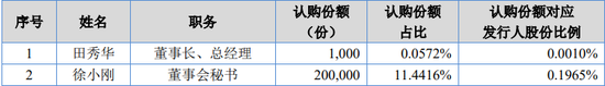 according to the penetrating prospectus of rui finance and economics "pre-trial IPO", the participants in the employee stock ownership plan also include Tian xiuhua, chairman and general manager of dongfang zhihui, and Xu Xiaogang, secretary of the board of directors. the two have subscribed for 1000 shares and 200000 shares respectively, with the subscription shares corresponding to 0.0010 and 0.1965 respectively. If Dongfang Zhihui goes public smoothly, the shares subscribed by the two will be worth 7320 yuan and 1.4384 million yuan respectively.