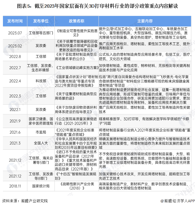 China attaches great importance to the development of 3D printing industry. In November 2018, the National Bureau of Statistics issued the Classification of Strategic Emerging Industries (2018), incorporating 3D printing equipment manufacturing into strategic emerging industries. In June 2021, the additive manufacturing equipment industry will be included in the key areas of the "leader" in the implementation of enterprise standards in 2021. In addition, China has also formulated relevant policies to promote the application of 3D printing technology in medical, construction, remanufacturing and other fields.