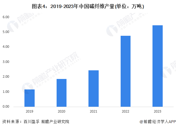 In terms of production, China's carbon fiber production continued to grow in 2023, but the growth rate slowed down. In 2023, domestic carbon fiber production was about 54600 tons, up 14.81 percent year-on-year.