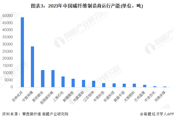 among China's carbon fiber manufacturers, Jilin chemical fiber has the highest operating capacity, close to 50000 tons. Zhongfu Shenying ranked second with an operating capacity of nearly 30000 tons. The operating capacity of Xinchuang Carbon Valley and Baojing Carbon Fiber is about 12000 tons, ranking third and fourth.