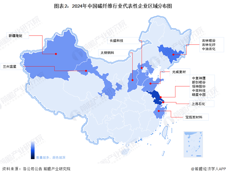 1. Regional supply pattern: Shandong Province has the largest number of carbon fiber enterprises