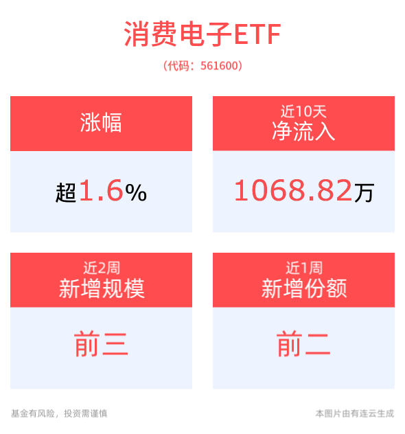 In terms of scale, the latest scale of AI artificial intelligence ETF reached 1.126 billion yuan. The scale of consumer electronics ETFs has increased by 10.0072 million yuan in the past two weeks, achieving significant growth, and the new scale ranks 3/7 of comparable funds.