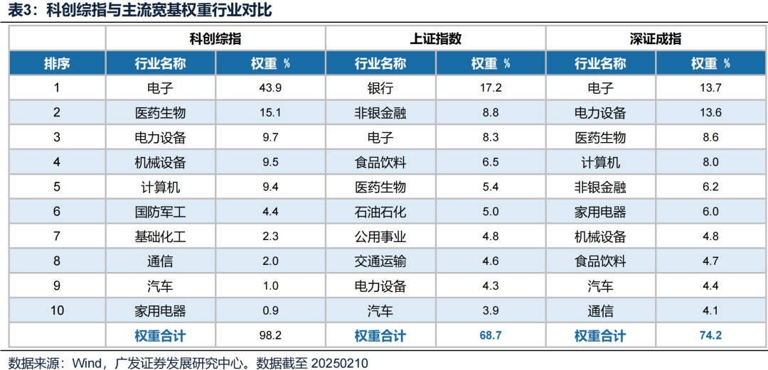 The Science and Technology Innovation Composite Index overallocates electronics, pharmaceuticals and machinery and equipment, and its allocation in terms of industry weight shows its emphasis on emerging technology industries. (1) The electronics industry accounts for 43.9% of the weight of the STAR Composite Index, much higher than the weight of the electronics industry in the Shanghai Composite Index and the Shenzhen Component Index (8.3% and 13.7% respectively). (2) The pharmaceutical and biological industry accounts for 15.1% of the weight of the Science and Technology Innovation Composite Index, which is also higher than the weight of the pharmaceutical and biological industry in the Shanghai Composite Index and the Shenzhen Stock Exchange Component Index (5.4% and 8.6%, respectively). (3) The weight of the machinery and equipment industry in the Science and Technology Innovation Composite Index is 9.5%, which is also higher than the weight of the machinery and equipment industry in the Shanghai Composite Index and the Shenzhen Component Index (3.5% and 4.8%, respectively).