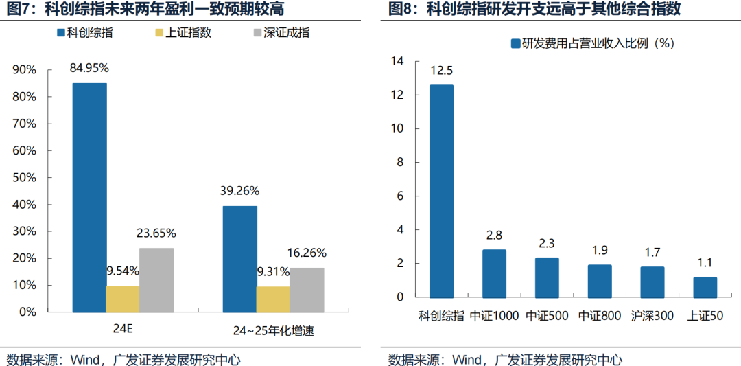 (3) The consensus expected net profit growth rate in 24~25 years is better than that of other indexes, which may be behind the high-intensity R&D investment of the Science and Technology Innovation Composite Index