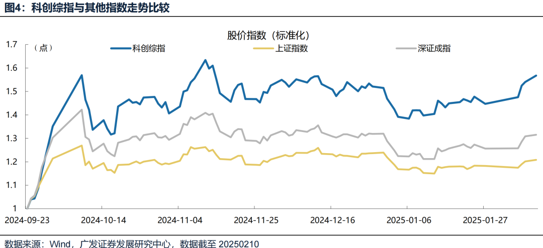 In the recent market rebound, the Science and Technology Innovation Composite Index has also shown stronger upward momentum. For example, between September 24, 2024 and February 10, 2025, the STAR Composite Index rose by 56.7%, significantly outperforming the 20.8% of the Shanghai Composite Index and the 31.5% of the Shenzhen Component Index, and the elasticity of the STAR Composite Index was significantly better than that of the broad-based index of the whole market.
