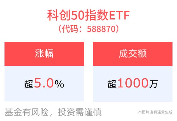 As of the close of trading at noon on February 21, 2025, the SSE Science and Technology Innovation Board 50 Component Index (000688) rose 5.16% strongly, the constituent stocks Aojie Technology (688220) rose 19.99%, Cambrian (688256) rose 17.50%, Haiguang Information (688041) rose 16.15%, Baili Tianheng (688506), VeriSilicon (688521) and other stocks followed suit. The Science and Technology Innovation 50 Index ETF (588870) closed up 5.01%, the latest price was 1.11 yuan, and the half-day turnover has reached 16.0105 million yuan, with a turnover rate of 22.59%, and the market is actively trading.