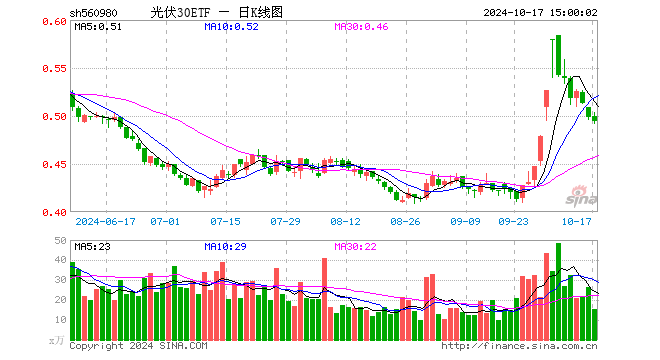 In terms of liquidity, as of October 17, the cumulative turnover of PV 30ETF (560980) in the past 20 trading days was 243 million yuan, with an average daily turnover of 12.1619 million yuan, and since the beginning of this year, the cumulative turnover in 189 trading days has been 3.467 billion yuan, with an average daily turnover of 18.3462 million yuan.