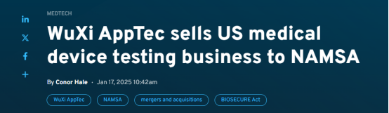 Recently, Chinese CRO giant WuXi AppTec announced the sale of its U.S. medical device testing business. It sold its two facilities in Atlanta, Georgia and St. Paul, Minnesota, to NAMSA, an Ohio-based medical technology testing, clinical and regulatory consulting firm. Financial details of the transaction were not disclosed.
